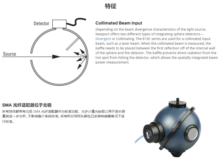 準(zhǔn)直光束積分球探測器